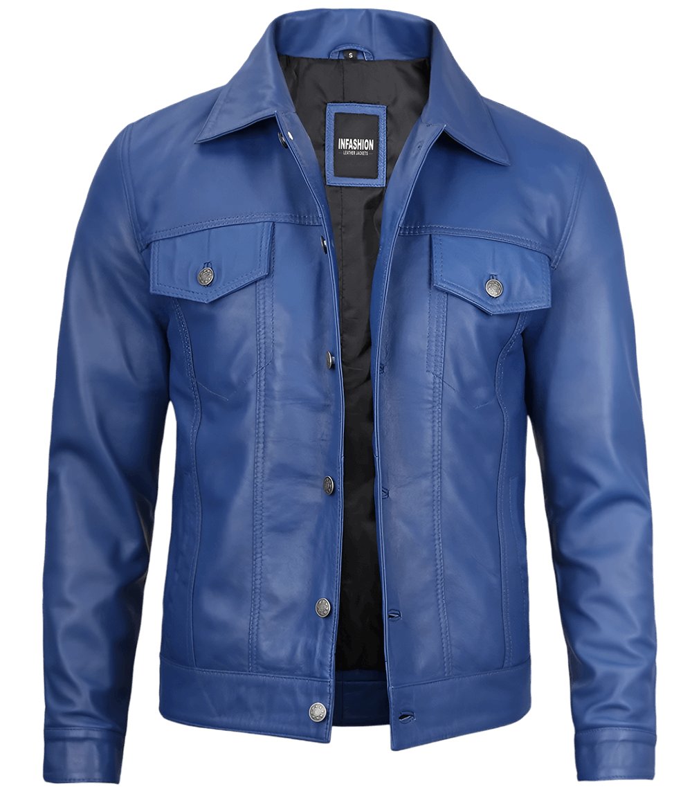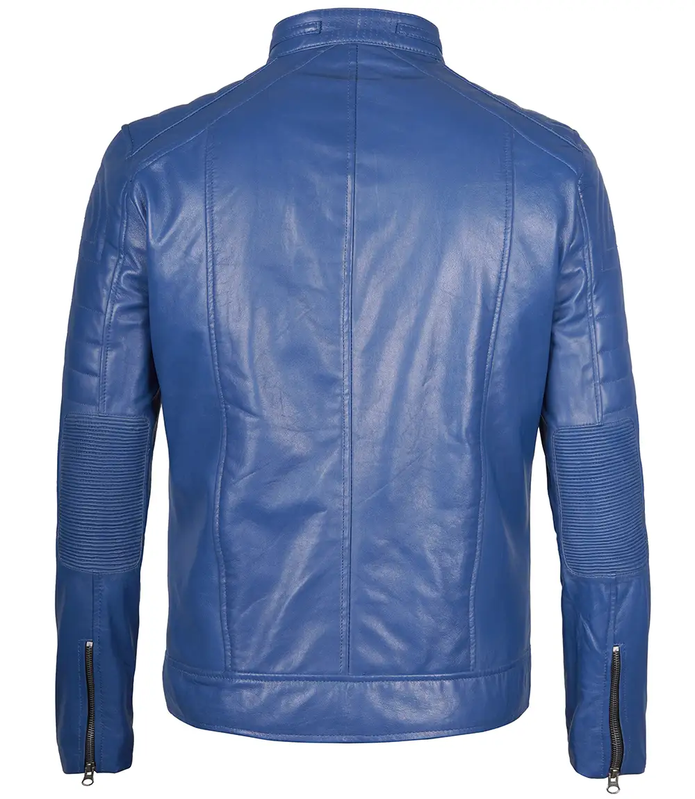 The Blue Leather Cafe Racer Jacket for men is a sleek and stylish choice, radiating confidence with its vibrant hue and classic design. Crafted from premium lambskin leather, it offers durability and comfort for any occasion.