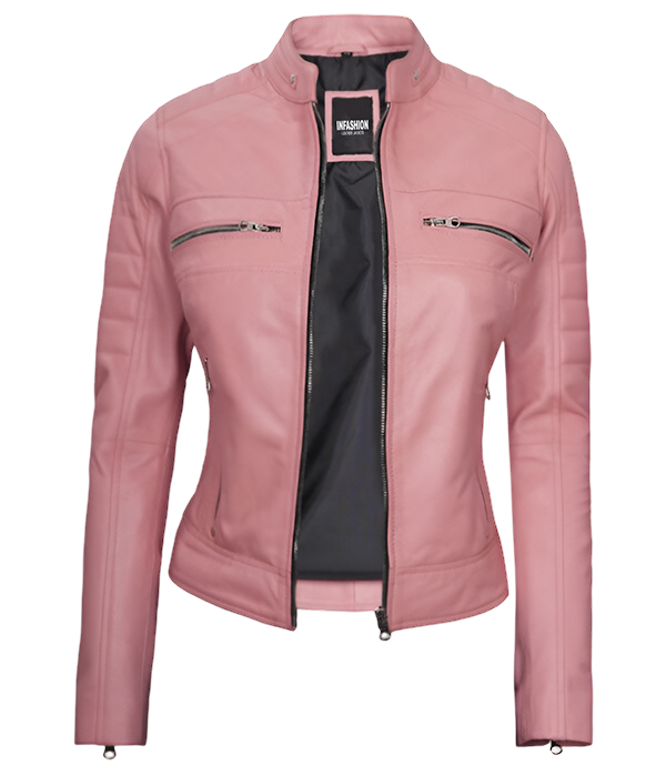 This Pink Cafe Racer Leather Jacket is timeless style with a modern twist. Its barbie-inspired vibrant pink design make it a standout piece in any wardrobe.