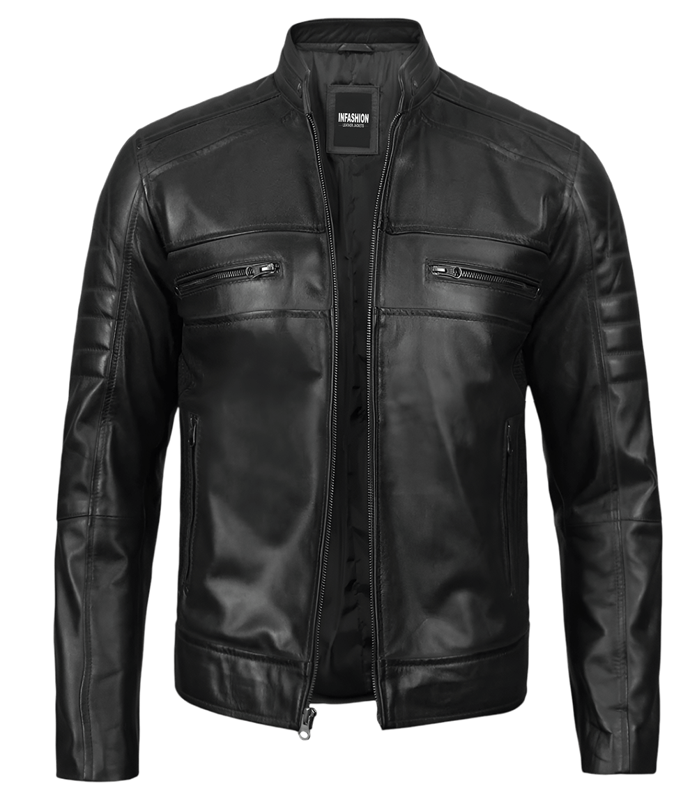 Black Cafe Racer Real Leather Motorcycle JacketBlack Cafe Racer Real Leather Motorcycle Jacket