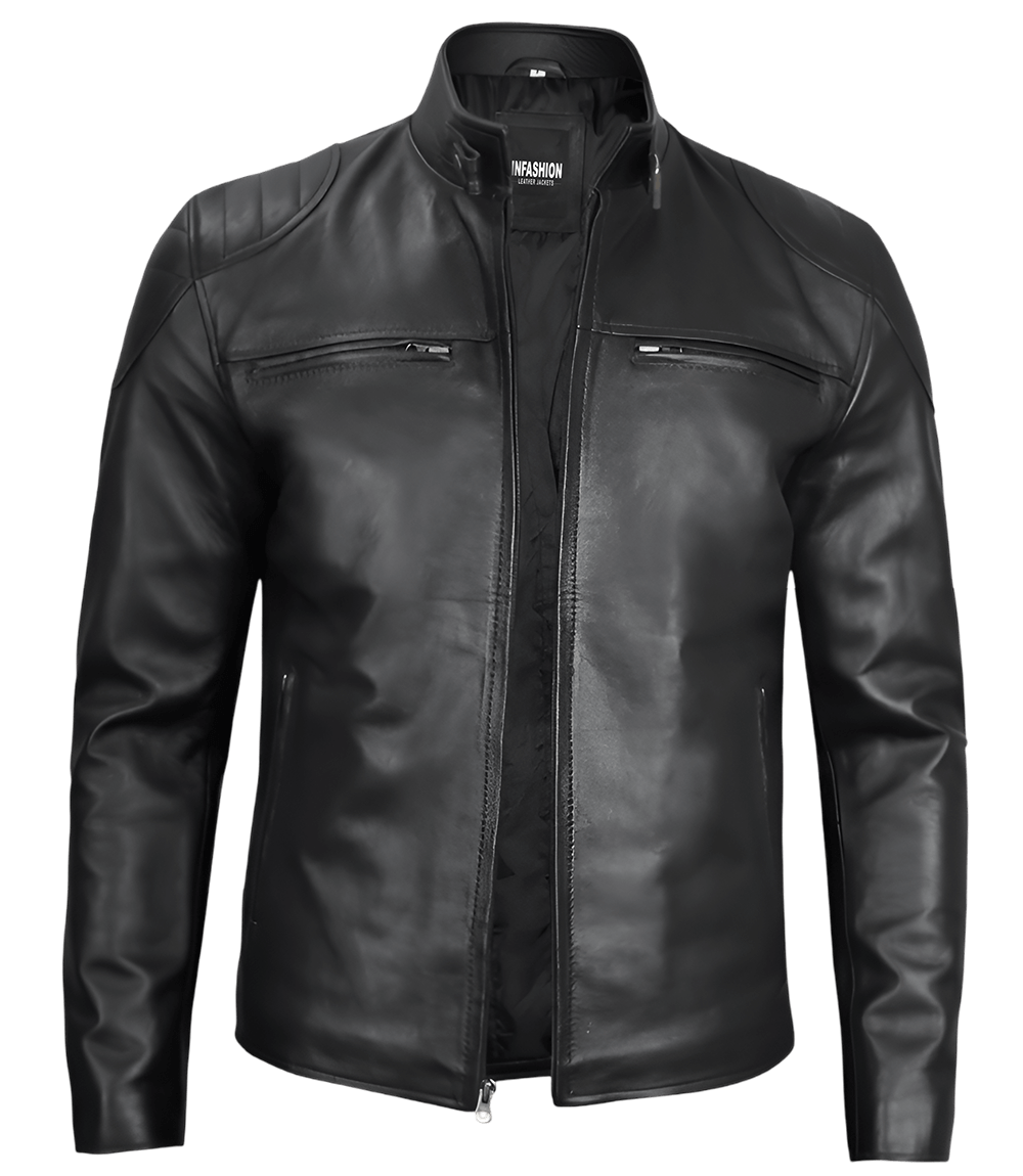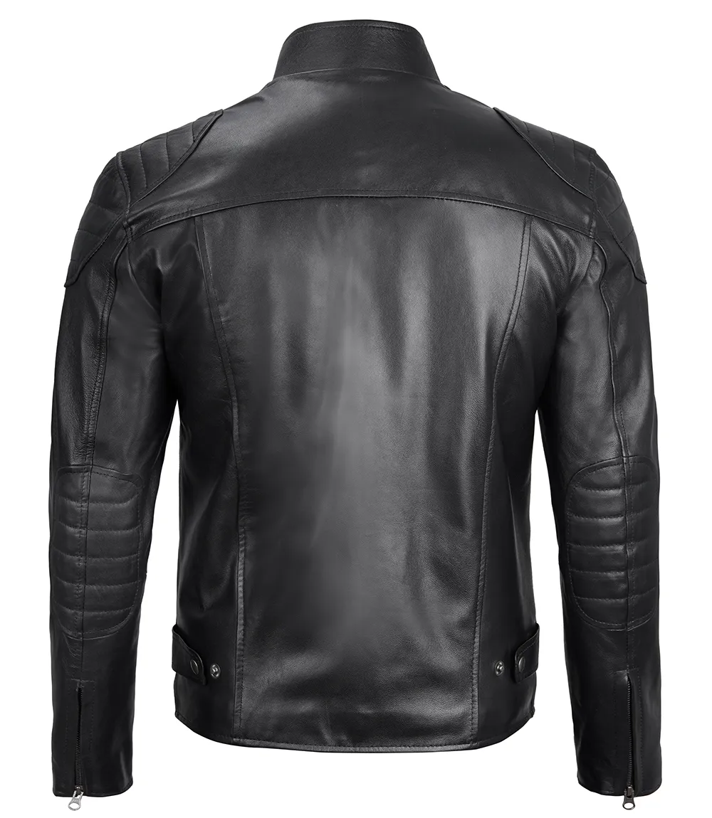 Black Real Leather Cafe Racer JacketBlack Real Leather Cafe Racer Jacket